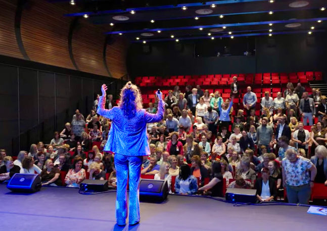 Eva was de keynote speaker tijdens het driedaags scholingsfestival 'Samen in beweging' van Oosterlengte. Ze neemt je op een pakkende manier mee, hoe om te gaan met veranderprocessen, in een mooie melange van scherpe observaties, humor en theater. Dat doet ze door het delen van eigen ervaringen, het schetsen van herkenbare situaties en met veel zelfspot. Ze houd je continu een spiegel voor en zet je op een speelse en elegante wijze aan het denken hoe je om kunt gaan met alle hobbels die je zeker zult tegen komen.
